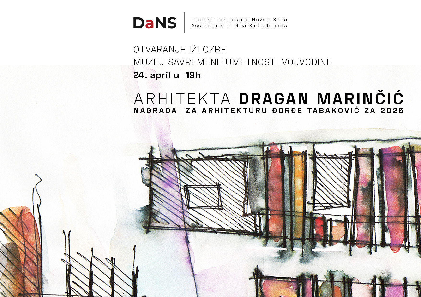 U petak, 24. aprila u 19h, u Muzeju savremene umetnosti Vojvodine, svečanim uručenjem nagrade biće otvorena autorska izložba radova arhitekte Dragana Marinčića, dobitnika Nagrade za